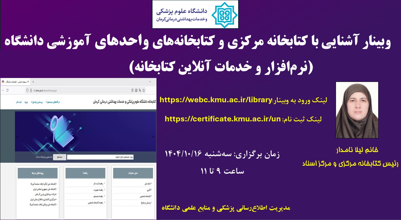 لینک ورود به وبینار: webc.kmu.ac.ir/library